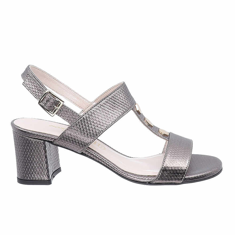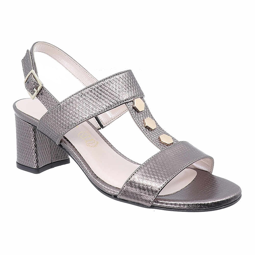 Γυναικεία πέδιλα Boxer Chic σχέδιο (Τ) με διακοσμητικές τόκες και τετράγωνο τακούνι μεσαίου ύψους.
