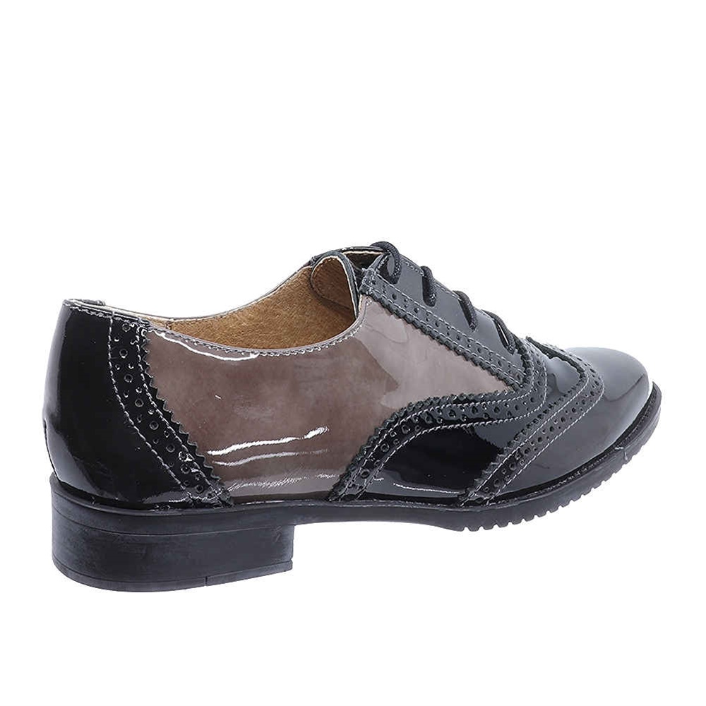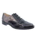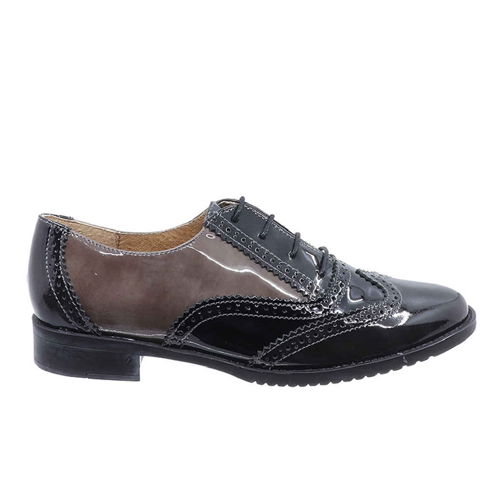 Γυναικεία μοκασίνια δετά λουστρίν DChicas με κορδόνια, σε στυλ oxford, διχρωμία μαύρο-τάουπε