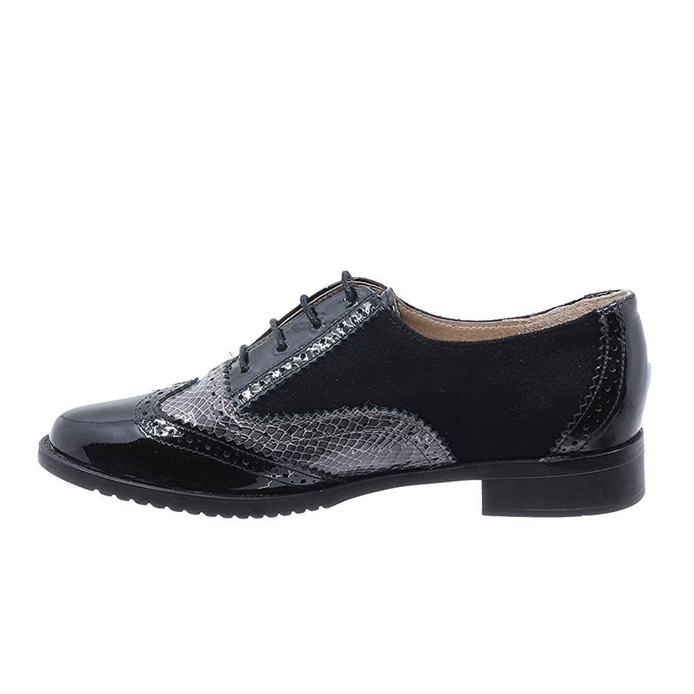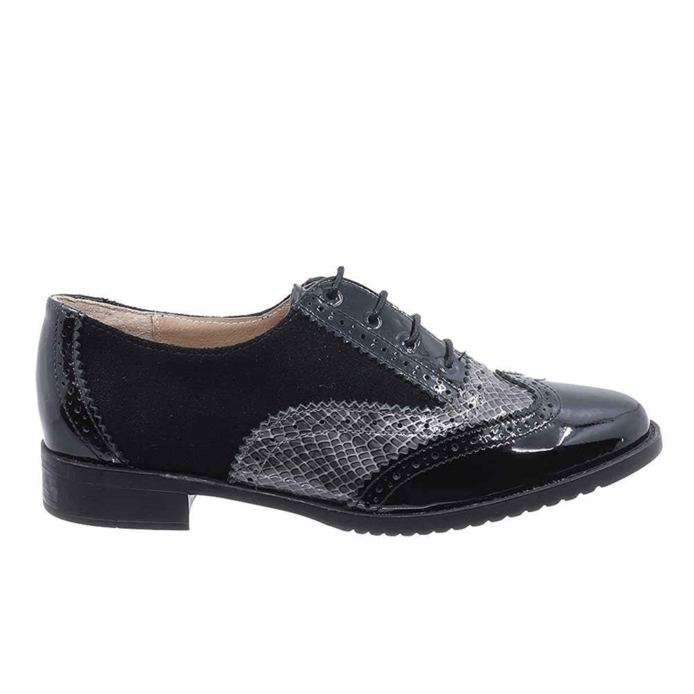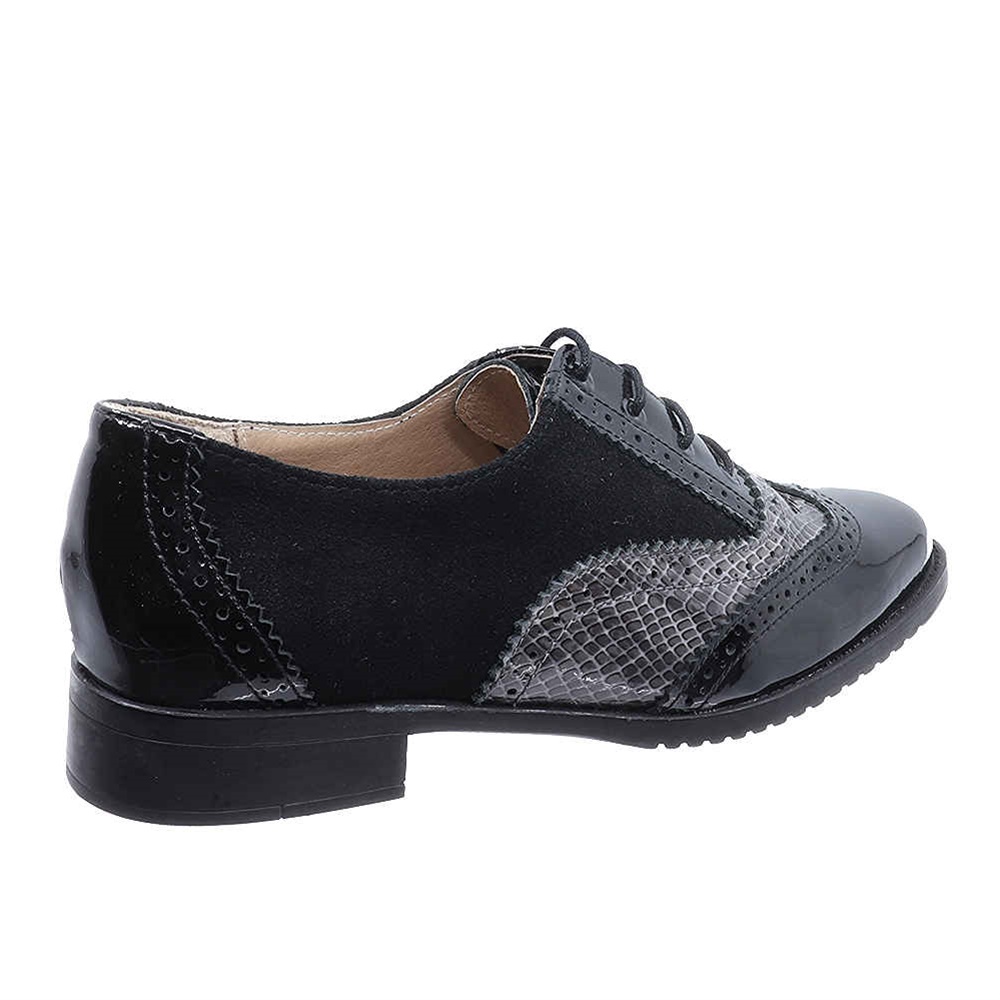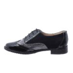 Γυναικεία μοκασίνια δετά λουστρίν DChicas, σε στυλ oxford, διχρωμία μαύρο-γκρι