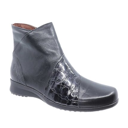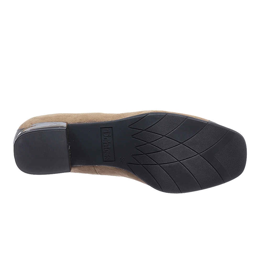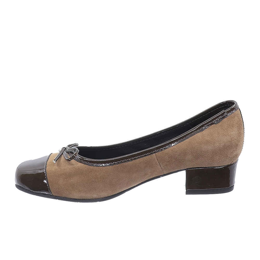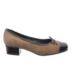 Ανατομικά γοβάκια,συνδυασμός δέρμα καστόρ-λουστρίν με χαμηλό, τετράγωνο τακούνι.