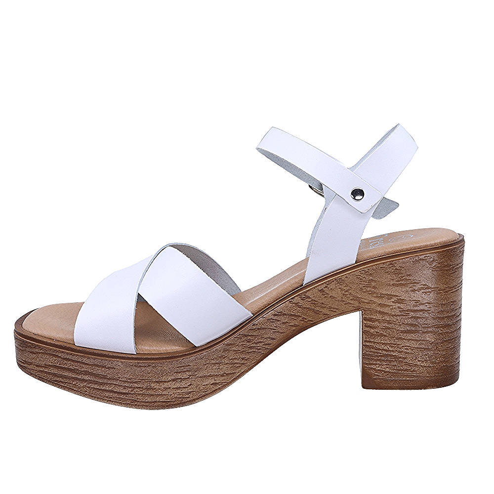 Γυναικεία ανατομικά πέδιλα Valerias με σχέδιο χιαστί με μπαρέτα και τετράγωνο τακούνι.