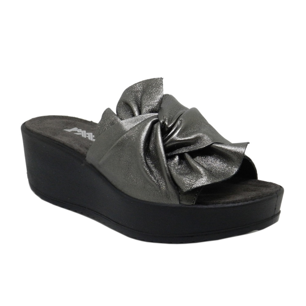 Γυναικείες ανατομικές πλατφόρμες Imac, με φιόγκο, σε μεταλλικές αποχρώσεις.