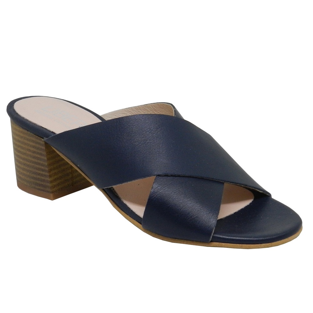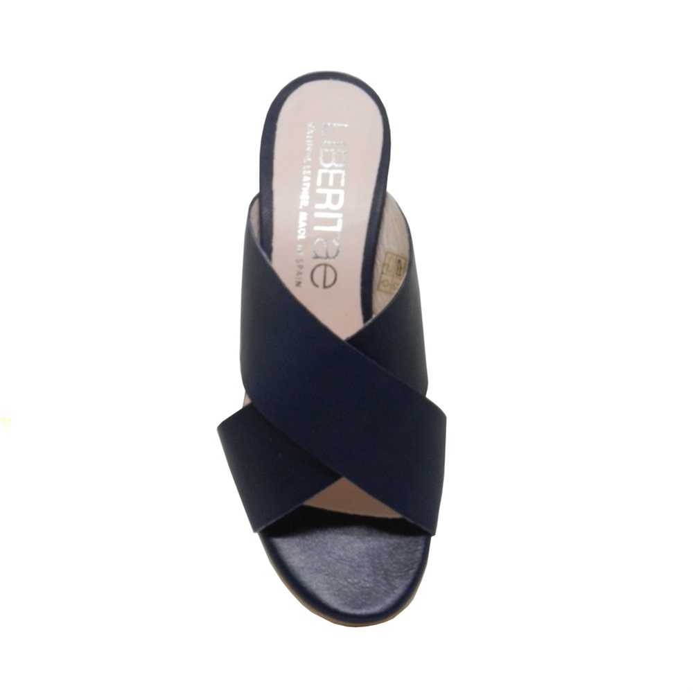 Γυναικεία ανατομικά mules της ισπανικής εταιρίας Liberitae, χιαστί με τετράγωνο τακούνι μεσαίου ύψους.