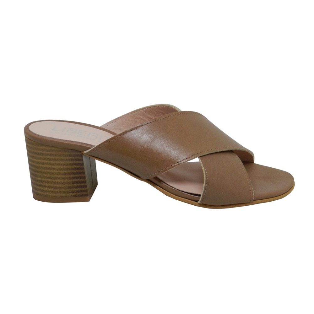 Γυναικεία ανατομικά mules της ισπανικής εταιρίας Liberitae, χιαστί με τετράγωνο τακούνι μεσαίου ύψους.