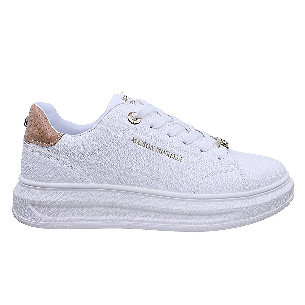 Λευκά sneakers της εταιρείας Maison Minrelle, σχεδιασμένα από συνθετικό δέρμα άριστης ποιότητας.