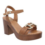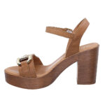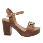 Γυναικεία πέδιλα Parex με χρυσή διακοσμητική αγκράφα και τετράγωνο τακούνι.