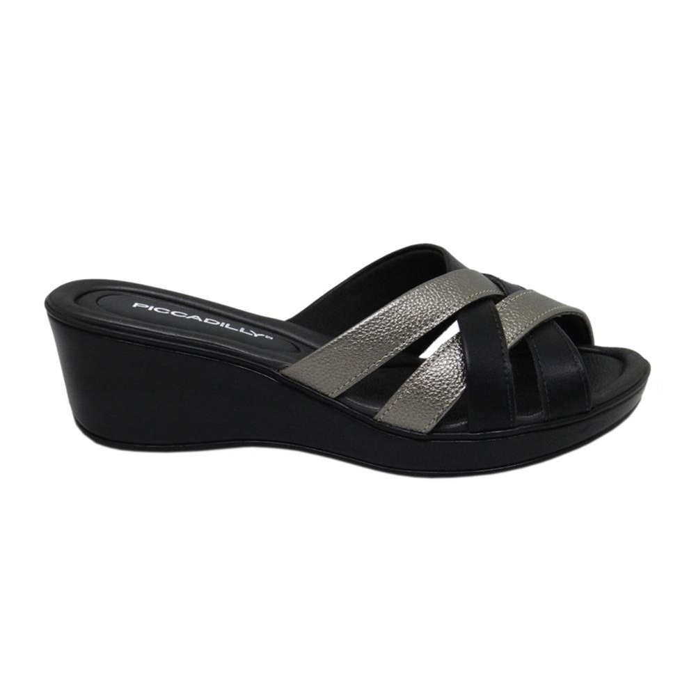 Γυναικείες ανατομικές πλατφόρμες Piccadilly, με χιαστί λουράκια συνδυασμός με μεταλλικά χρώματα.