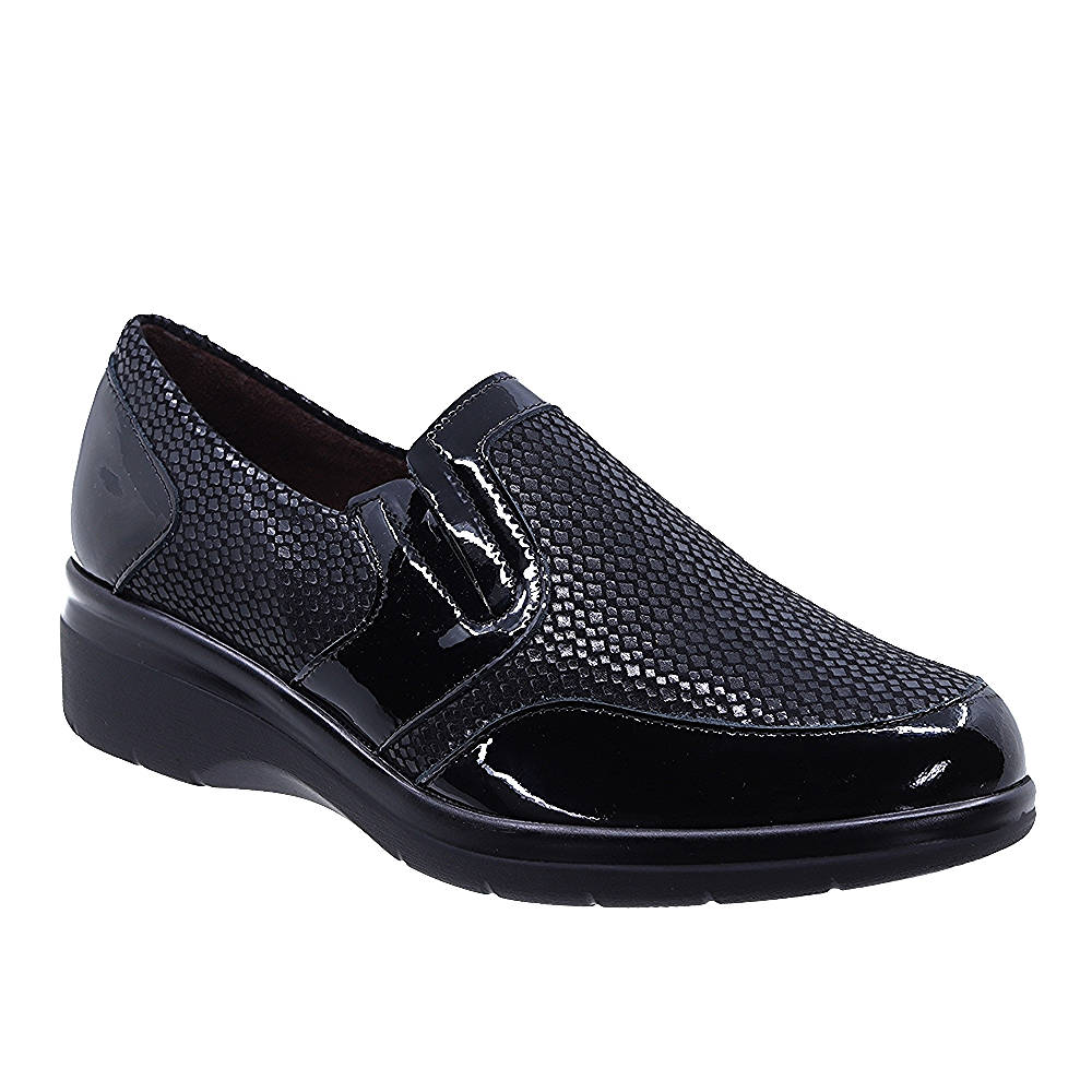 Γυναικεία μοκασίνια Pitillos, σε συνδυασμό λουστρίν δέρματος και ελαστικής lycra, με λάστιχα στο πλάι για άψογη εφαρμογή.