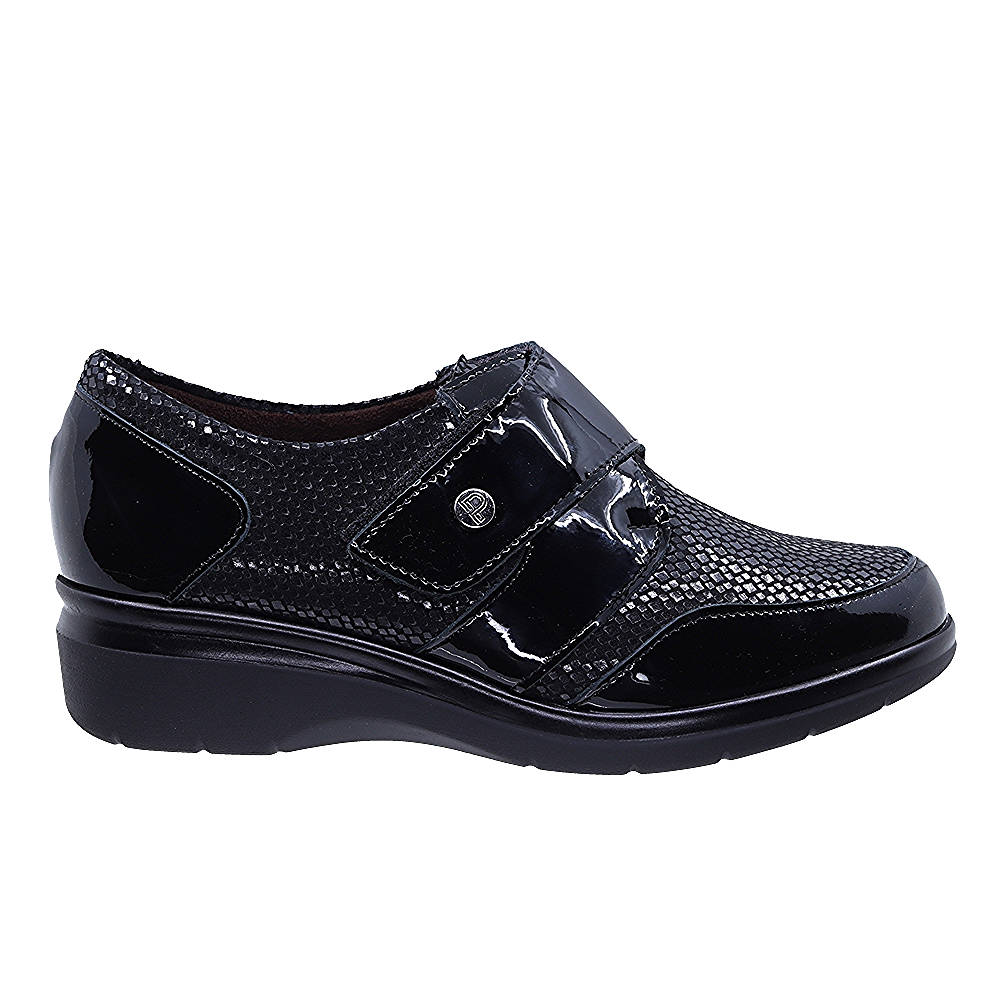 Γυναικεία μοκασίνια Pitillos, σε συνδυασμό λουστρίν δέρματος και lycra, με αυτοκόλλητο στο πλάι για εύκολη και τέλεια εφαρμογή.