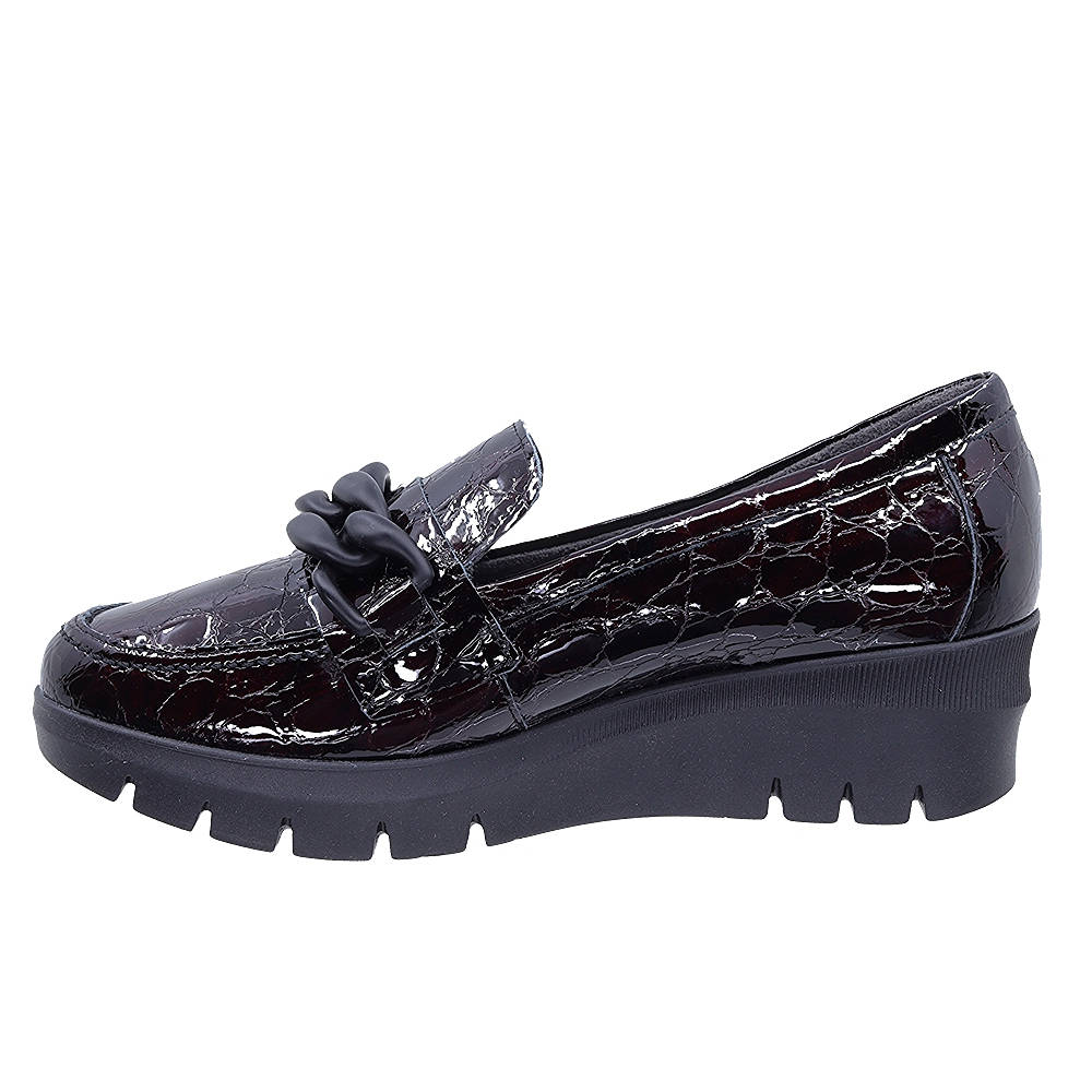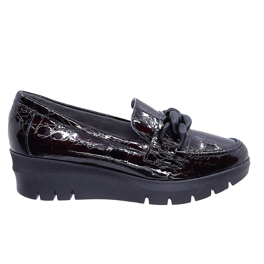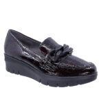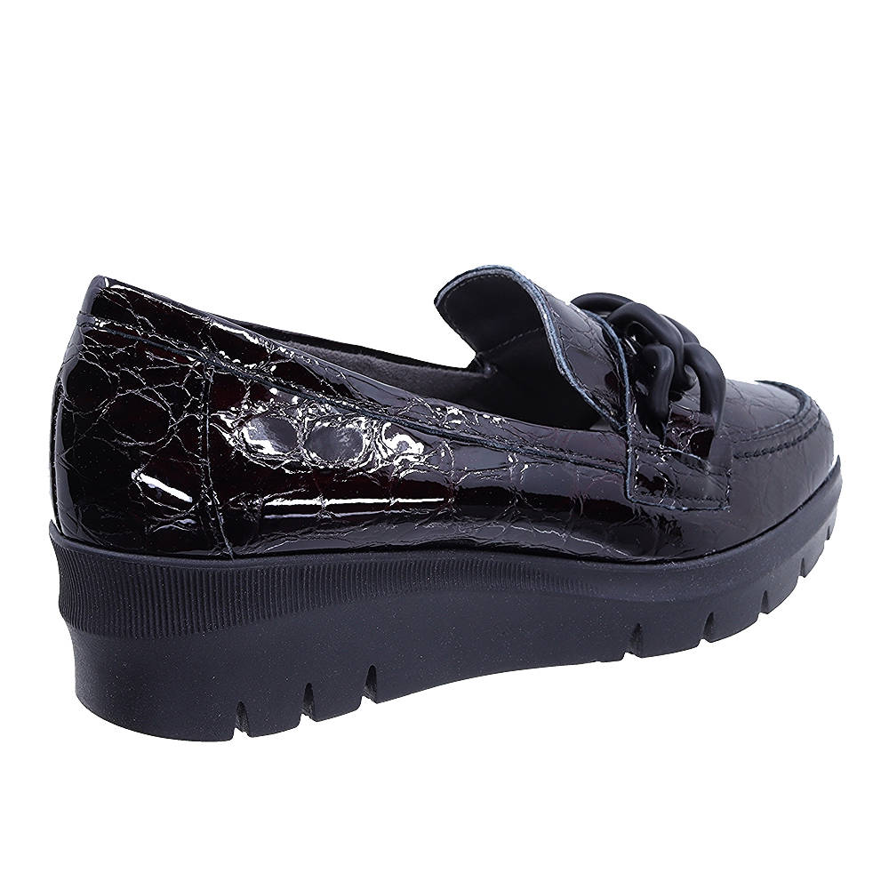 Γυναικεία Ισπανικά μοκασίνα Pitillos με λουστρίν κορκό γνήσιο δέρμα και μαύρη διακοσμητική αλυσίδα.