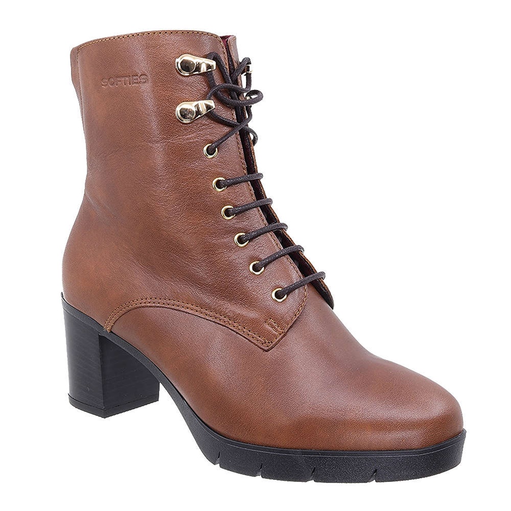 Γυναικεία σπορ μποτάκια Softies, με τετράγωνο τακούνι, πλαινό φερμουάρ και κορδόνια.